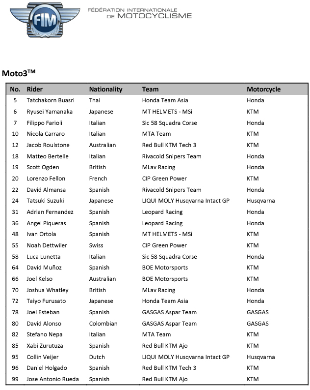 14e du classement général en 2023 mais absent de la liste provisoire publiée par la FIM aus soir de Valence, il trouve donc finalement une place aux côtés du pilote suisse Noah Dettwiler.
