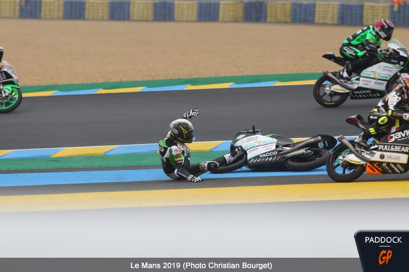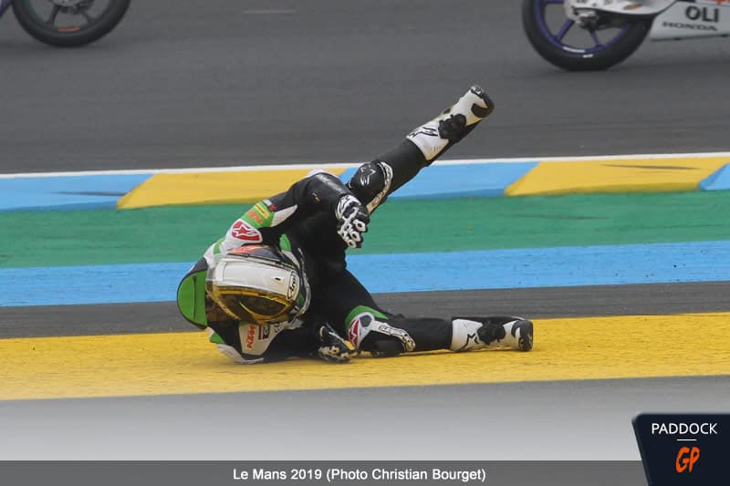 Après un très bon départ, Darryn pointait déjà en 17e position au premier passage avant d’être victime d’une lourde chute dont vous trouverez les photos ci-dessous. Touché à la main gauche, il a immédiatement pris la direction de Barcelone où il a subi une intervention.