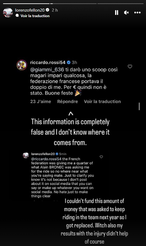 Lorenzo Fellon explique comment il s'est retrouvé à perdre son guidon pour 2024 en mentionnant la question du budget mais aussi des résultats.