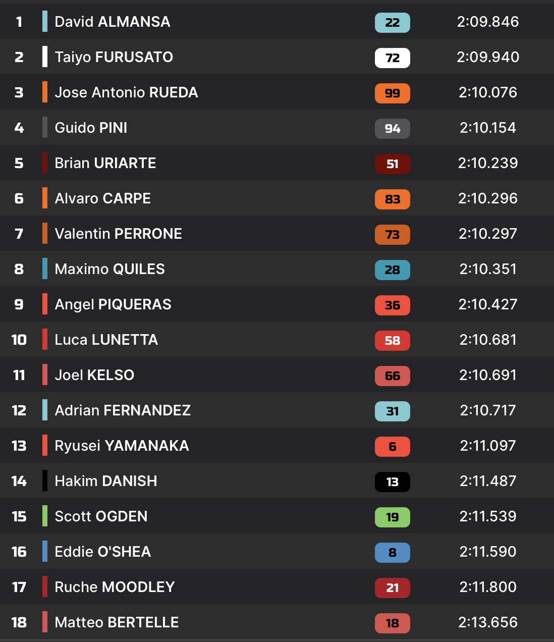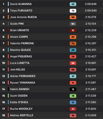 Q2 2’09.542 Adrian Fernandez 2’09.846 David Almansa