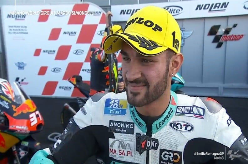 « Ce fut un weekend difficile, car tout s’était déroulé jusque-là sur le mouillé, et je ne suis vraiment pas bon dans ces conditions ! Mais au moins durant le warm up j’étais assez tranquille car j’avais la certitude que la course allait se dérouler sur le sec. Je me suis élancé depuis la 14e position, et je me suis dit qu’il était temps d’attaquer. Je savais qu’avec mon équipe nous disposions d’un bon potentiel. C’est mon sixième podium consécutif et ma deuxième victoire ici, ainsi que la troisième en Italie. Je ne sais pas exactement où en est le championnat, car Pedro Acosta a lui aussi fini sur le podium, mais je suis tout simplement content, et je tiens à féliciter toute mon équipe car la moto a été absolument parfaite. »