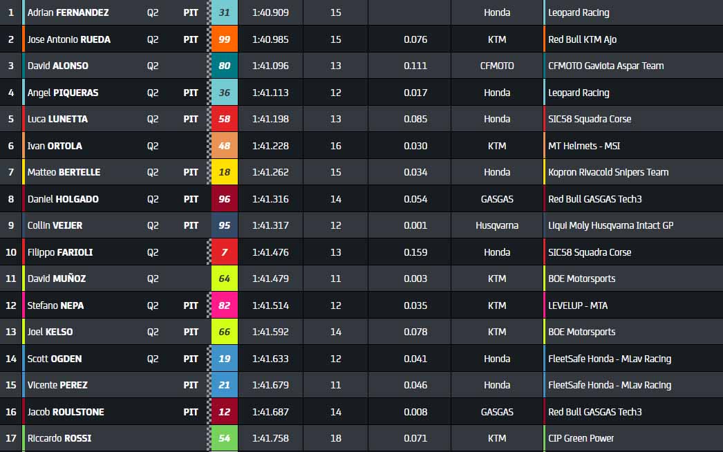 | Record | 1’41.155 Celestino Vietti 2020 | 1’40.909 Adrian Fernandez |