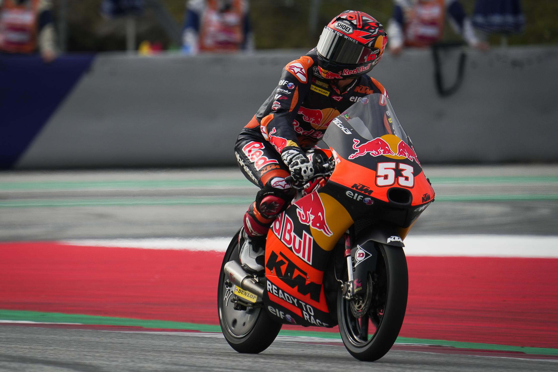 Jaume Masia sur la KTM du Team Red Bull Ajo est quatrième, devant les Honda Snipers d’Andrea Migno et les KTM du Team Tech 3 de Deniz Oncu et du Team MT Helmets – MSI de Ryusei Yamanaka. Dennis Foggia (Honda Leopard) a terminé neuvième, devant le GP CFMoto del Pruestel de Carlos Tatay. John McPhee (Husqvarna Max Racing Team), Sergio Garcia (GasGas Aspar) et, avec les chronos établis hier, Tatsuki Suzuki (Honda Leopard) et Diogo Moreira, rookie KTM MT Helmets – MSI, se sont également directement qualifiés pour la Q2.