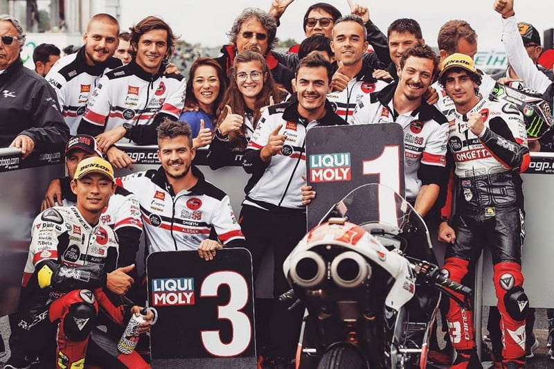 « Nous sommes donc arrivés en Championnat du monde avec un jeune pilote qui était avec moi depuis [un moment] : Tony Arbolino. Et à ses côtés est arrivé Tatsuki Suzuki, qui était en Mondial depuis deux ans mais que personne ne connaissait. Et puis quand Arbolino est parti, Antonelli est arrivé. »