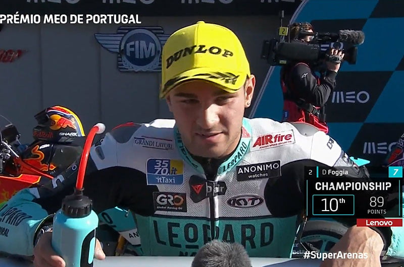 Dennis Foggia (2e) : « Incroyable ! Je n’ai pas de mots ! Avant la course ça semblait impossible avec deux pénalités de long lap et puis pendant la course j’ai attaqué, attaqué, attaqué. Je remercie ma famille, mon équipe qui est incroyable. Pour moi c’est l’une des meilleures du paddock. Merci à Flavio, Sandro, Lino, tout le monde et bravo à Arenas pour le titre. »