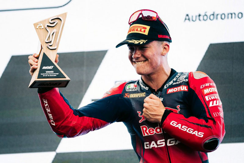Hervé Poncharal : « Après la petite déception de la course au Qatar, nous savions que le Portugal allait être une autre course très disputée, car il y a clairement quatre-cinq coureurs devant les autres. Le vendredi a été un peu difficile pour Daniel Holgado, mais il a trouvé ce dont il avait besoin le samedi. J’étais déçu de ne pas le voir sur la première ligne, mais il m’a dit : « Ne vous inquiétez pas patron, l’année dernière je suis parti P4 et j’ai gagné la course ! J’ai continué à y penser et je me suis dit : pourquoi pas ? Dani a pris un super bon départ, il y a eu une forte bataille entre Alonso, Ortola, Rueda et Holgado jusqu’aux deux-trois derniers tours. Je pense que l’équipe de Dani, dirigée par Hector Testuri, a fait le bon choix de pneus, avec des mediums à l’avant et à l’arrière, et il était le seul comme ça dans le groupe de tête. Dans les derniers tours, il avait une meilleure adhérence, ce qui l’a aidé à conserver la première place. Les courses de Moto3 sont tellement difficiles et stressantes à regarder, mais quand vous en gagnez une, c’est un sentiment incroyable. Félicitations à l’équipe et merci à Pierer Mobility pour son soutien. Bien sûr, je voudrais aussi féliciter Jacob Roulstone, notre débutant. Il a fait un excellent travail aujourd’hui, même si son départ n’a pas été très bon, mais il a ensuite réussi à remonter jusqu’à la 11e place. Il est très intelligent et très travailleur, il ne parle pas beaucoup mais agit sur la piste, et je pense qu’il a un bel avenir. Superbe week-end au Portugal, nous partons avec la tête du championnat des pilotes et du championnat des équipes, alors continuons à bien travailler comme ça ! »