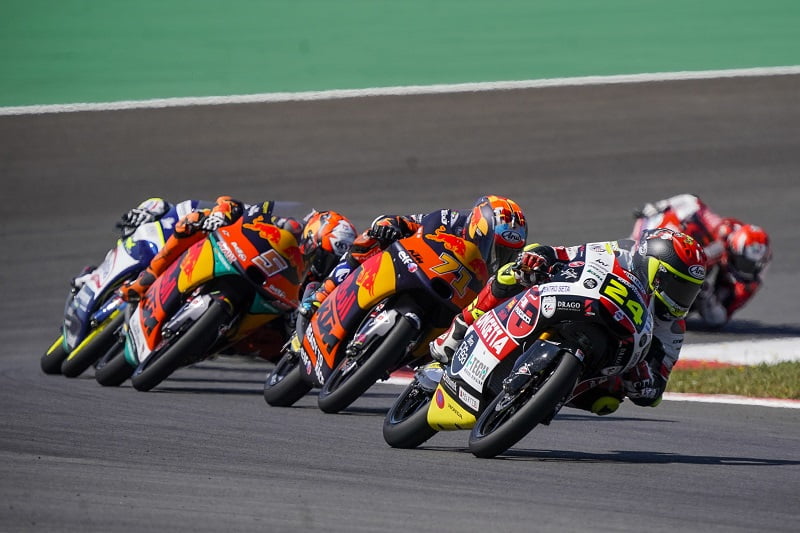 Ils ont décidé de donner une pénalité de 1 000€ à moi et à d’autres équipes : Ils pensent que nous avons mis les pilotes sur la piste, exprès tous ensemble, 3 minutes avant la fin des qualifications, créant un embouteillage, le même qui se produit au début de la course, quand ils partent tous ensemble. Je n’aime pas non plus ce spectacle que l’on offre au public, où tous les pilotes attendent le plus fort pour prendre son aspiration, mais pour l’instant il n’y a pas de règle qui interdise de sortir du box quand on le souhaite. Peut-être que les coureurs pourraient être punis, mais pas l’équipe. Dans un moment aussi difficile, alors que nous dépensons 60/70.000€ en tests PCR entre le CEV et le Championnat du Monde Moto3, (ce qui est déjà discutable), ils ont décidé d’ajouter également cette amende injuste de la part de la direction de course…