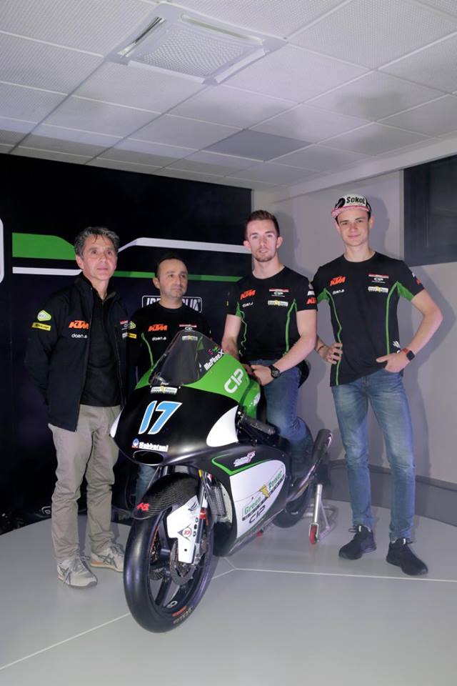 Présente depuis de nombreuses années en Grand Prix, principalement dans la petite catégorie mais également en catégorie intermédiaire entre 2009 et 2012, l’équipe française CIP d’Alain Bronec alignera cette saison l’expérimenté Écossais John McPhee et le rookie kazakh Makar Yurchenko, après avoir permis aux pilotes italiens Marco Bezzecchi et Manuel Pagliani de poursuivre leur progression en 2017.