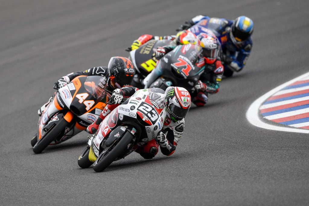 Antonelli fait partie de l’exigeante VR46 Academy. Le patron de cet élevage de champions « Uccio » Salucci a clairement déterminé la feuille de route de son poulain italien : c’est la saison ou jamais. Il faut y réussir ou périr. Pour réaliser ses ambitions Antonelli se lance dans une saison de Moto3 avec l’équipe SIC58 Squadra Corse mené par le père de feu Marco Simoncelli.