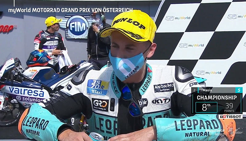 Jaume Masiá (2e) : « C’est un très bon podium. J’ai beaucoup chuté après la course du Qatar et j’ai retrouvé le feeling qu’on recherchait, et j’espère l’avoir à chaque fois. »