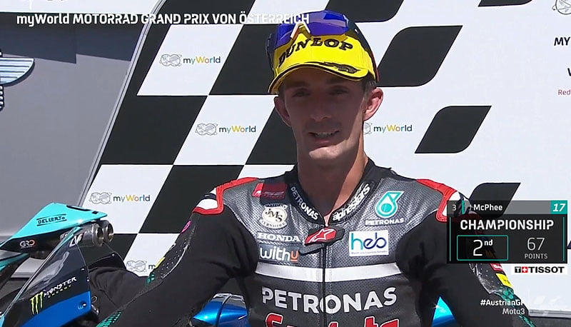A peine descendus de leurs machines, les trois pilotes Moto3 qui ont terminé sur le podium lors du Grand Prix d’Autriche, au Red Bull Ring, se sont confiés devant la caméra du site MotoGP.com.