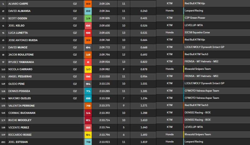 Finalement, personne ne peut battre la nouvelle marque record d’Alvaro Carpe. David Almansa termine deuxième, juste devant le local Scott Ogden (KTM CIP Green Power), Joel Kelso et José Antonio Rueda. Les favoris sont au rendez-vous.