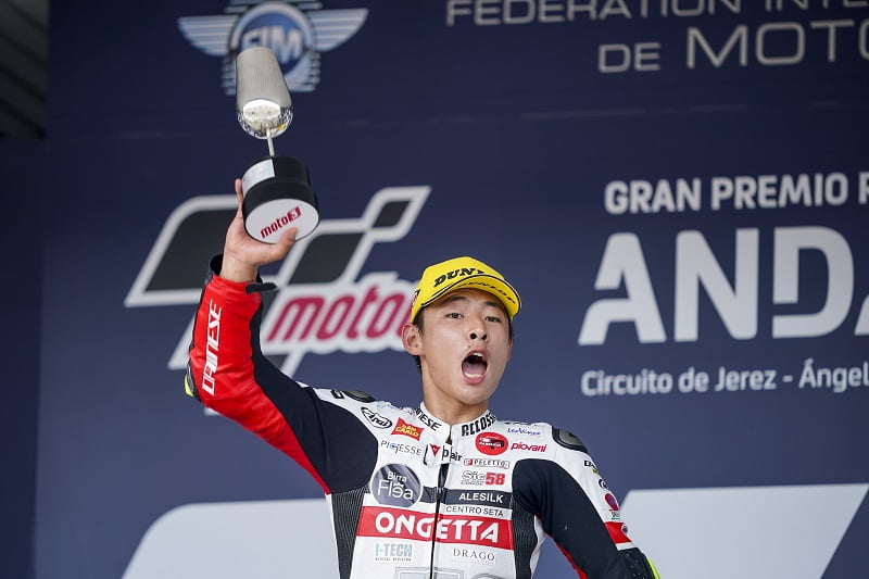 Paolo Simoncelli congratulates @TatsukiSuzuki24 as @teamSic58 take their 2nd win in 3 visits to Jerez! 🥇#Moto3 | #AndaluciaGP 🏁 pic.twitter.com/ic0epNYwLx