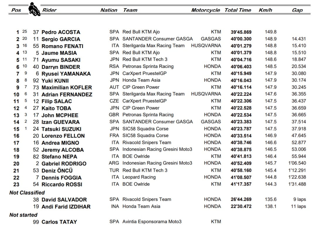 Moto3 – Styrie : Résultats Course
