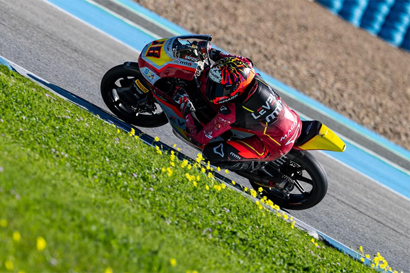 La catégorie Moto3 a donc conclu ses essais officiels sur le circuit Jerez-Ángel Nieto dans un cadre radicalement différent de celui de la veille. Après un samedi ensoleillé, mais un vent et des températures basses qui ont compliqué les réglages, un soleil radieux et une température ambiante bien plus clémente (jusqu’à 17°) ont permis aux pilotes de rouler confortablement aujourd’hui, enchaînant les tours à un rythme soutenu et réalisant des chronos proches des records de la catégorie.