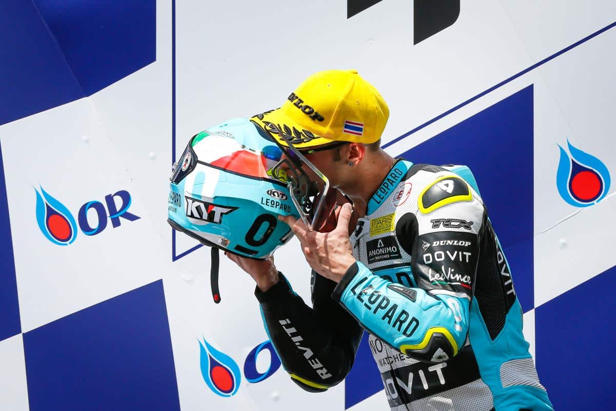 Lorenzo Dalla Porta a perdu la bataille dans les derniers virages de Buriram face à Albert Arenas (KTM) pour la victoire, mais il n’a pas à regretter son résultat dans l’optique du championnat : « ce fut l’une des courses les plus difficiles de ma vie, mais pour des raisons personnelles » avoue l’équipier de Ramírez qui dévoile : « ma grand-mère nous a quittés il y a quelques jours et c’était difficile. Ma famille n’était pas là, mais heureusement, je peux compter sur une excellente équipe, qui m’a soutenu pendant le week-end. Leopard est une vraie famille, je ne les remercierai jamais assez » a déclaré l’italien, âgé de 22 ans.
