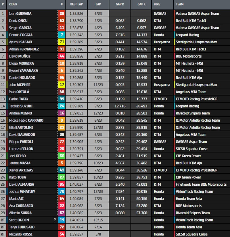 Deniz Öncü s’est qualifié en deuxième position, ce qui est la sixième fois cette saison qu’il se qualifie parmi les trois premiers. Il tentera de remporter sa première victoire, presque quatre ans après que son frère Can ait remporté sa première et seule victoire à ce jour à Valence en 2018.