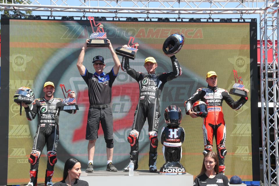 Comme il l’a fait samedi dans le nord-ouest du Pacifique, Jake Gagne a remporté la course Superbike ce dimanche. C’était sa septième victoire consécutive en catégorie Superbike sous une chaleur torride ce dimanche enflammé, avec des températures dépassant les 45°C, ce qui était extrêmement difficile pour les machines et leurs pilotes. Le pilote Yamaha Fresh N ‘Lean Attack Performance n’a battu son coéquipier Josh Herrin que de 4,4 et 5,6 secondes, respectivement, dans les deux courses à Ridge Motorsports Park.