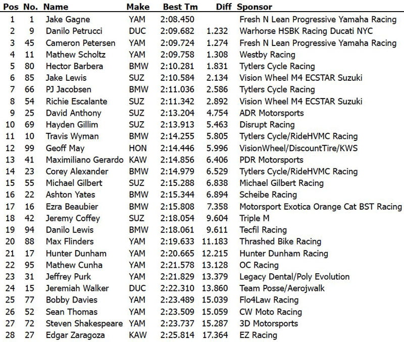 Soulagement pour Jake Gagne, son chronos du matin lui permettait de conserver la pole position, pour 34 millièmes !