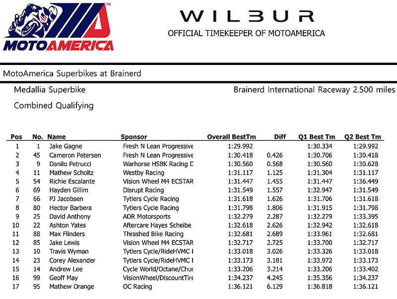 C’est également à 15h10 heure locale (22h10 heure française) que débutera demain la course 2 du MotoAmerica Superbike au Minnesota. L’ensemble du programme de la course sera diffusé en direct grâce au service (sur abonnement) MotoAmerica Live+.