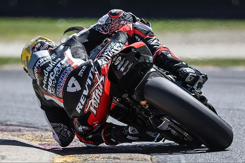 Auteur du deuxième meilleur temps en 1’30″560 hier, Danilo Petrucci avait bien entamé la deuxième séance de qualification. Directement auteur d’un remarquable 1’30″628, avant que Jake Gagne s’approche à son tour de sa propre pole provisoire établie hier (1’30″356). Après avoir monté un pneu neuf à 15 minutes de l’arrivée, il a été victime d’une chute au virage 5 lors de son premier tour lancé, la dynamique n’ayant pas été captée par l’équipe de télévision. « Petrux » s’est relevé sur ses deux pieds et a même récupéré les parties endommagées (carénage, arrière) de sa V4 R. Il est à noter que le MotoAmerica a retenu la leçon après ce qui s’est passé à VIR. Pas moins de cinq marshalls étaient présents à cette occasion, prêts à vérifier l’état de santé du motocycliste de Terni…
