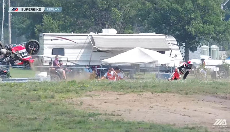 Dans la foulée, Jack Gagne partait à la faute et sa moto immobilisée au milieu de la piste entraînait l’arrêt de la course au drapeau rouge. Malheureusement, Loris Baz, alors leader, connaissait le même sort au virage suivant, avec plus de conséquences puisque la Ducati Panigale fortement endommagée du Français ne pouvait prendre le deuxième départ, contrairement à la Yamaha de Jack Gagne qui alignait son 10e succès consécutif devant Bobby Fong (M4 Ecstar Suzuki) et Mathew Scholtz (Westby Racing LCC).