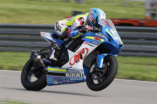 Valentin Debise: « Comme depuis 3 ans, je cours dans le même team M4 Suzuki Ecstar, en 600cc Supersport dans le championnat MotoAmerica, anciennement AMA. Cette année, je me suis fait mal à Daytona lors d’une course préparatoire et j’ai raté les 2 week-ends de courses suivantes au championnat. À mon retour, j’ai gagné la première course que j’ai faite avant d’enchaîner pas mal de podiums, dont une 2e victoire le week-end dernier lors de la première course à Pittsburgh. Pour le moment, je suis remonté à la 3e place du classement général, après avoir raté 2 week-ends de course, donc 4 courses ».