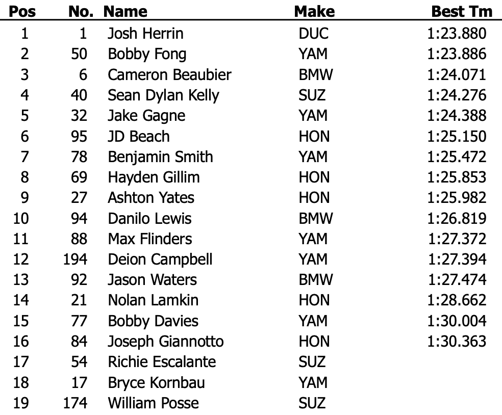 MotoAmerica, Laguna Seca (J1) – Le classement de la Q1 :