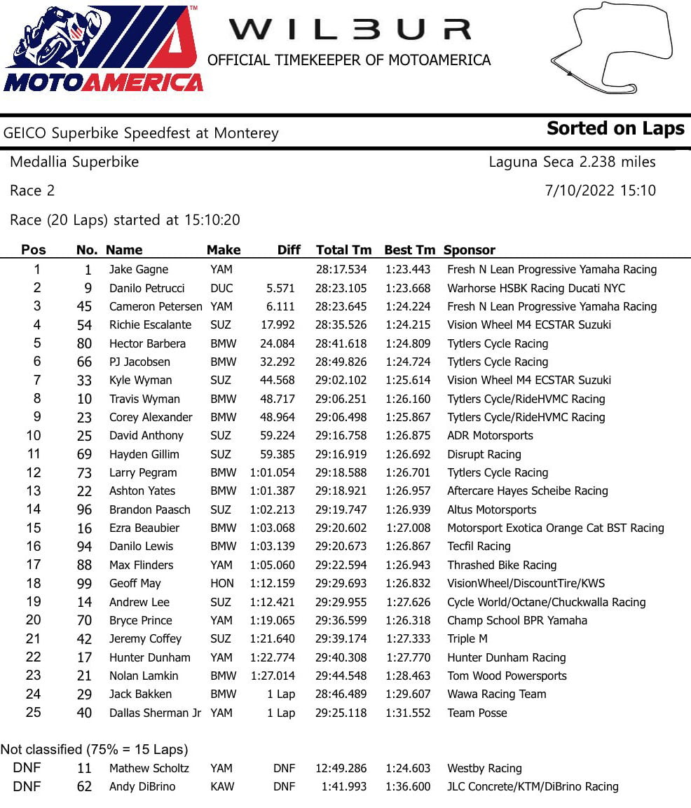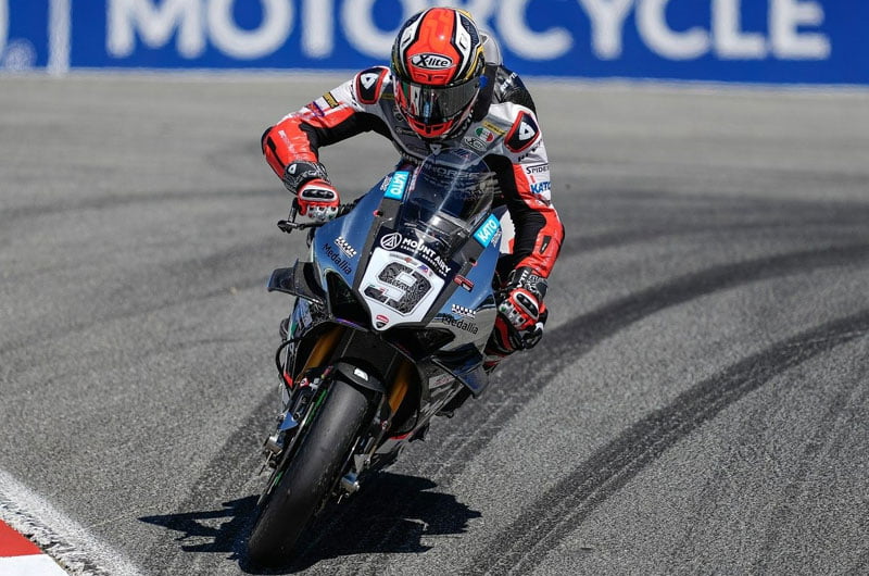 Mais le pilote Ducati, bien que le seul à tourner en 1’23 comme le Californien, ne peut visiblement rien faire et voit son déficit se creuser dixième après dixième. A la mi-course, alors que Mathew Scholtz est parti à la faute, Petrux concède plus de 4 secondes de retard sur l’officiel Yamaha tandis que Cameron Petersen, après s’être fait une chaleur en début de course, a repris la 3e place et commence à remonter sur la Panigale V4 R chromée…