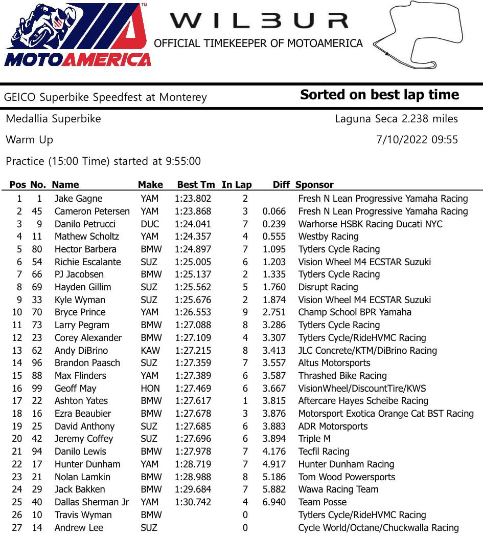 Déjà vainqueur de la course  #1 du samedi, le bouillant Californien réalisait le meilleur temps du warm up dimanche matin.