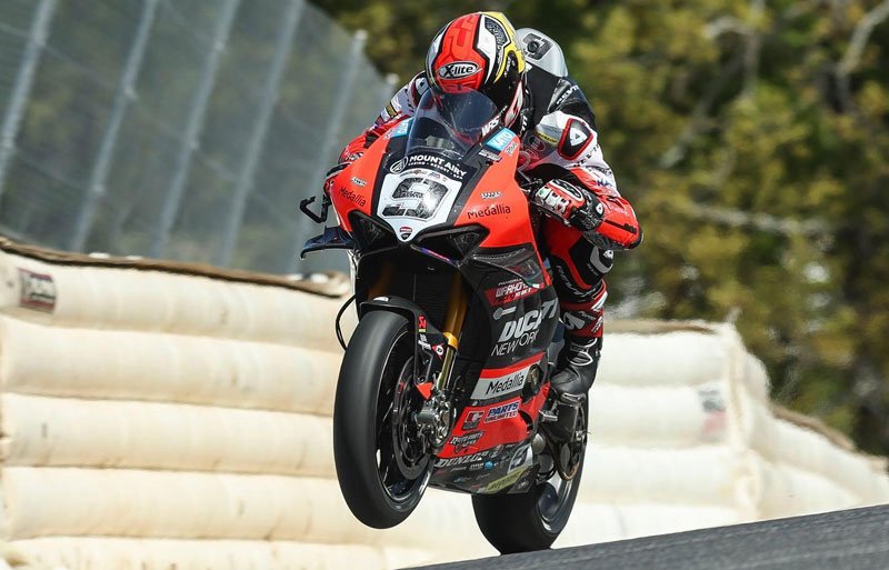 Et, bien que victorieux, le pilote représentant Ducati aux USA avec son équipe Warhorse HSBK Racing Ducati New York n’était pas vraiment content ! Non pas parce qu’il ne doit probablement cette victoire qu’à la chute de Jake Gagne (Fresh N’ Lean Progressive Yamaha Racing) alors en tête, mais plutôt à cause du comportement de certains pilotes attardés.