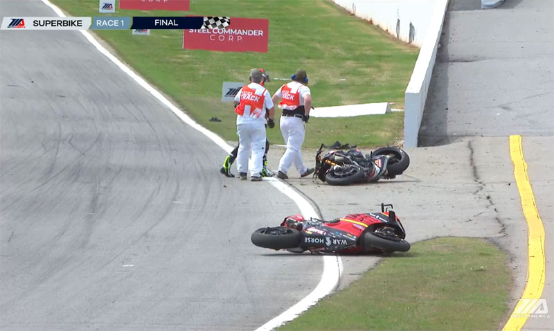 Quelques secondes après avoir franchi le drapeau à damier, Richie Escalante a percuté l’arrière de Loris Baz, et les deux pilotes ont chuté lourdement.