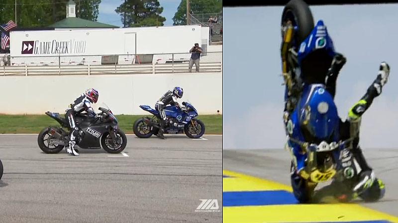 Toujours vendredi, Jack Gagne enfonçait le clou lors de la qualification-1 de 40 minutes, avec presque une seconde d’avance sur Cameron Beaubier dans une séance marquée par la très spectaculaire chute de Cameron Petersen !