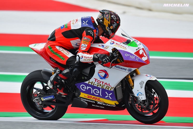 Le Grand Prix d’Autriche aura donné lieu à deux premières en MotoE, avec tout d’abord samedi la première pole position dans la catégorie de Fermín Aldeguer (Openbank Aspar Team), qui avait auparavant brillé en FP3 avec déjà l’obtention du meilleur temps. Le pilote espagnol a ainsi été le plus véloce lors de la séance de qualifications, arrachant la pole position pour seulement 47 millièmes d’avance sur son plus proche rival, Lukas Tulovic (Tech3 E-Racing).