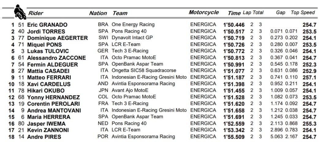 Le Brésilien se montre décidément intraitable cette saison en MotoE, avec une troisième E-Pole en autant de séances disputées. Il devance le Champion en titre Jordi Torres d’un souffle.