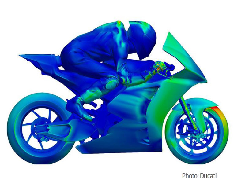 Ducati Corse a travaillé sur la conception électronique, sur les contrôles et stratégies du logiciel, sur les simulations de la dynamique et de l’aérodynamique, et sur l’assemblage de la moto, les tests et le processus d’acquisition de données.