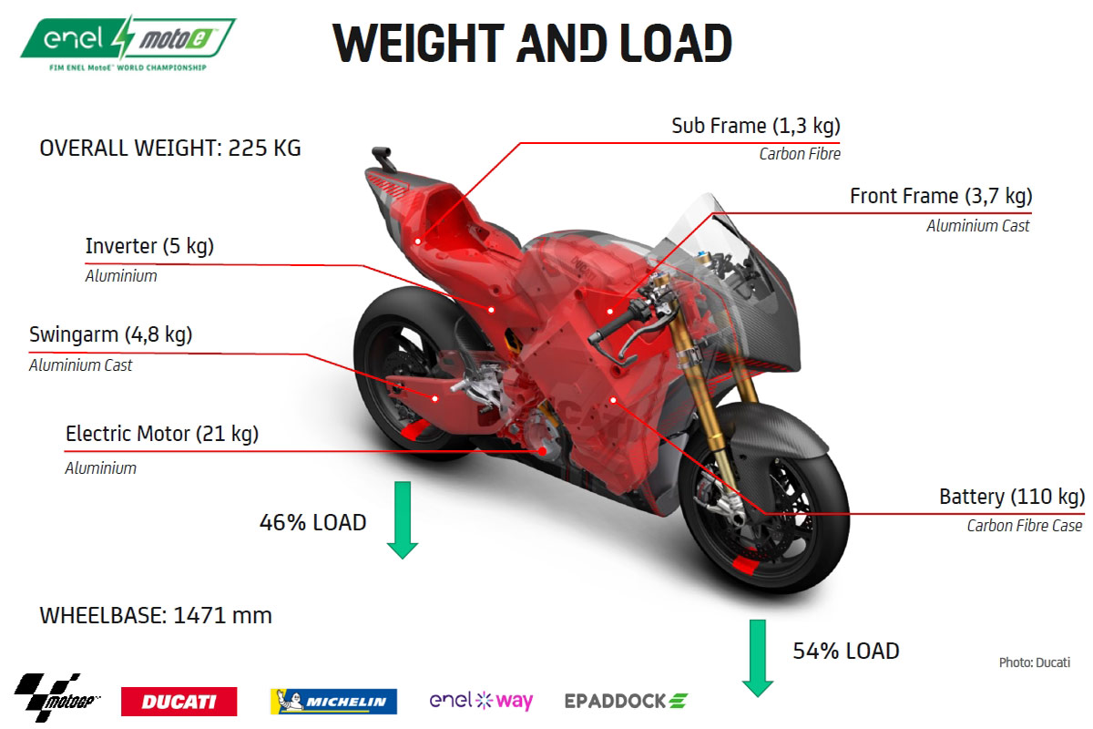 Le poids a été l’un des points critiques dans la conception de la Ducati MotoE™, en raison de son importance pour la sécurité et la facilité de conduite.