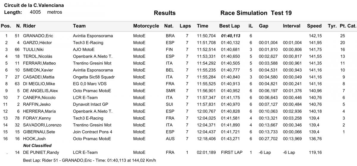 MotoE : Granado, Garzó et Tuuli sur le podium de la première simulation de course à Valencia