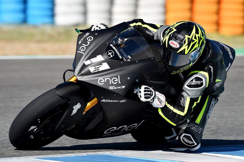 « C’est la moto et les pneus, parce que ça ne perd qu’une seconde par kilomètre entre le sec et le mouillé Donc sur le mouillé, ça fait des temps très très honorables. 1’56 sur le mouillé à Jerez, c’est pas mal du tout ! On était avec les Moto2, donc on a pu faire des comparaisons directes : dans les virages serrés, c’est 5 bornes plus vite qu’une Moto2, et c’est 10 bornes plus vite dans les virages rapides ! ».