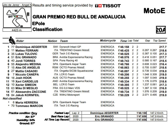 MotoE Jerez 2 J2 : Dominique Aegerter remporte sa première E-Pole en Andalousie