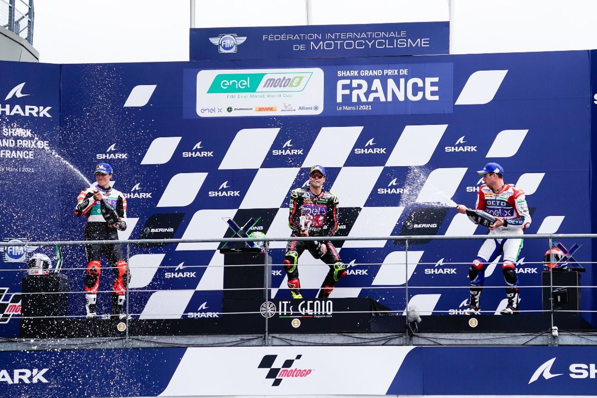 Son premier triomphe de la saison se produit en gagnant in extremis un grand duel avec Alessandro Zaccone. En fin de compte, Alessandro Zaccone est rétrogradé troisième car il est sorti de la piste dans le dernier tour. Pas trop mal, puisqu’il conserve le leadership de la MotoE. Deuxième place pour Mattia Casadei, qui réalise une belle remontée depuis la 16ème place sur la grille et conquiert ainsi son premier podium de 2021.