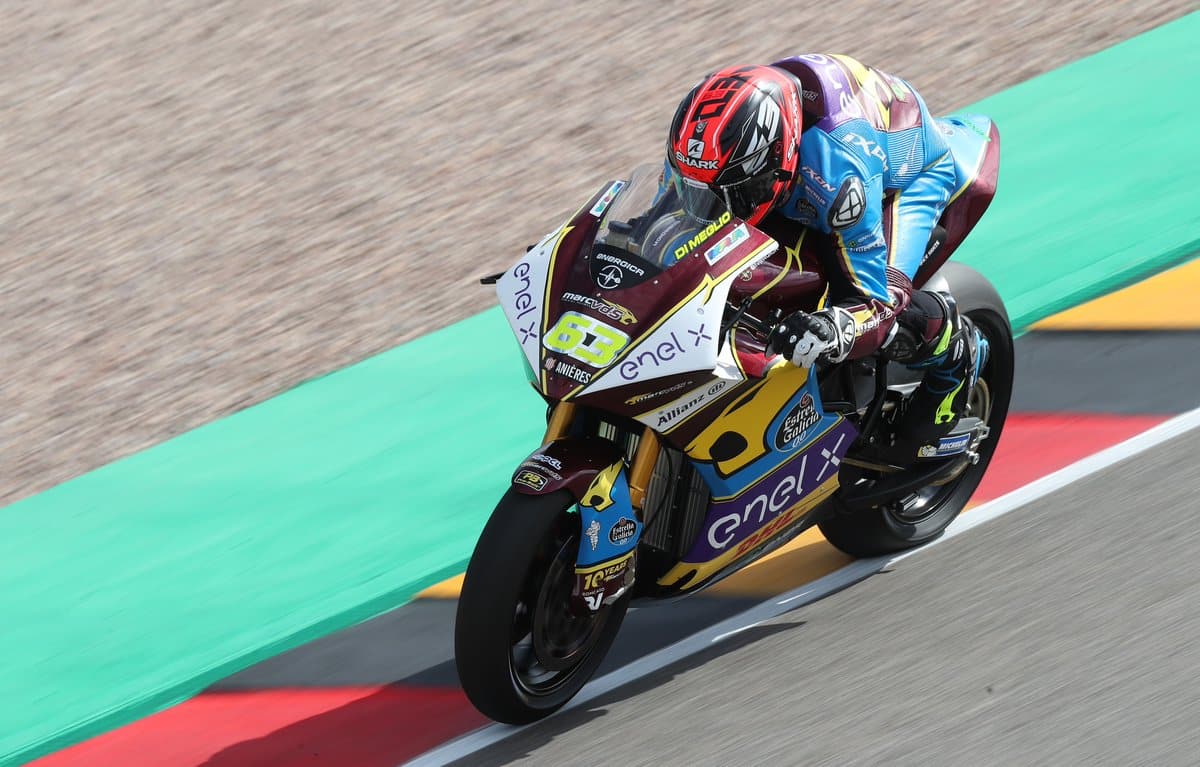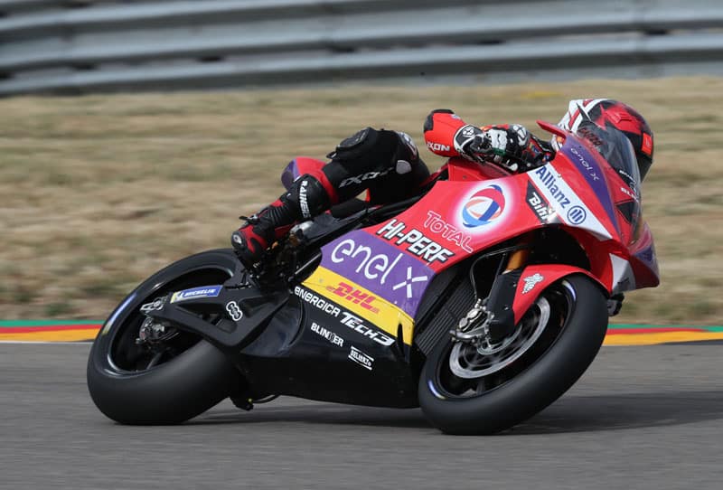 Le matin, les pilotes ont pu prendre leurs marques sur l’étroit tracé du Sachsenring et, hormis la chute de Lorenzo Savadori (Trentino Gresini MotoE), aucun incident n’a été signalé.