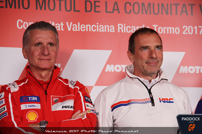 Étaient présents Livio Suppo (Repsol Honda team Principal), Paolo Ciabatti (Ducati MotoGP Project Director), Lin Jarvis (Yamaha Motor Racing Manager Director), Davide Brivio (Suzuki Team Manager), Romano Albesiano (Technical and Sporting Aprilia Racing Manager) et Pit Beirer (KTM Motorsport Director).