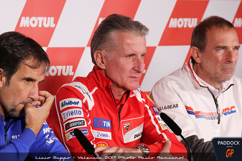 Étaient présents Livio Suppo (Repsol Honda team Principal), Paolo Ciabatti (Ducati MotoGP Project Director), Lin Jarvis (Yamaha Motor Racing Manager Director), Davide Brivio (Suzuki Team Manager), Romano Albesiano (Technical and Sporting Aprilia Racing Manager) et Pit Beirer (KTM Motorsport Director).