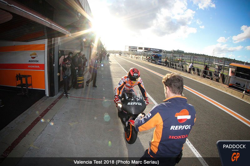 Le champion espagnol s’en est expliqué le soir, devant les journalistes réunis entre les 2 camions Honda : « nous nous sommes concentrés aujourd’hui pour travailler sur la nouvelle moto car il y avait beaucoup de nouvelles choses à comprendre. Le matin, j’ai déjà été très rapide et très à l’aise, et j’en suis resté là, car pour parler franchement, il m’était interdit de chuter. C’est la raison principale pour laquelle je suis resté calme, j’ai juste pris un rythme et essayé des choses. Cela a été une bonne journée pour nous et nous avons beaucoup progressé. Nous avons essayé beaucoup de choses et recueilli beaucoup d’informations. Il reste encore beaucoup de travail à faire mais c’était bien. Parfois, nous avons fait une sorte de mélange entre différentes choses pour essayer de comprendre quelle était la meilleure direction à suivre, donc nous sommes restés longtemps dans le box le matin et nous avons fait quelques runs plus consistants durant l’après-midi. Globalement, nous avons travaillé sur le moteur qui est le domaine où nous nous concentrons le plus ».
