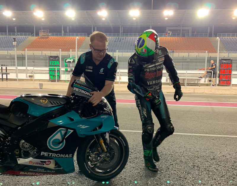 Alex Briggs, un des trois fidèles mécaniciens de Valentino Rossi, informe que suite à l’expansion du coronavirus, et pour éviter les transferts en aéroports qui sont des zones de risques, Yamaha a demandé à ses ingénieurs de rester au Qatar jusqu’à la course, le 8 mars, à l’inverse de la plupart des autres teams qui vont rentrer chez eux pour quelques jours…