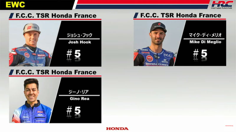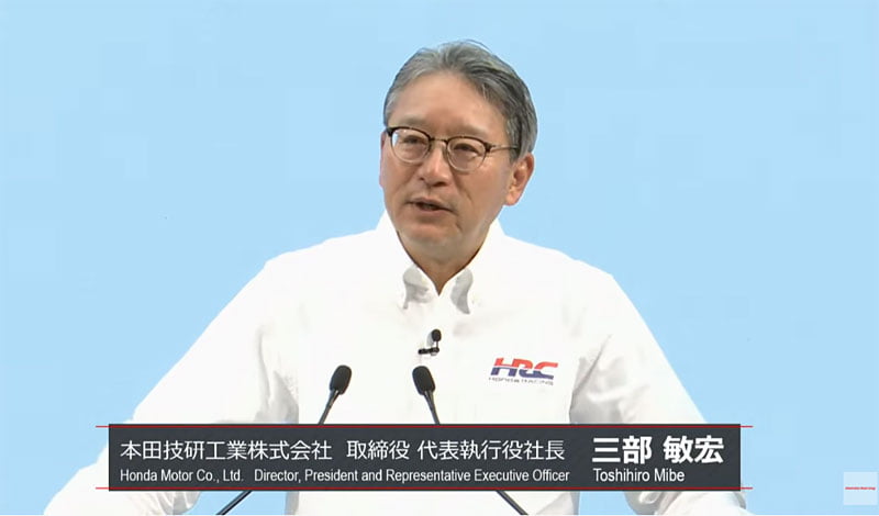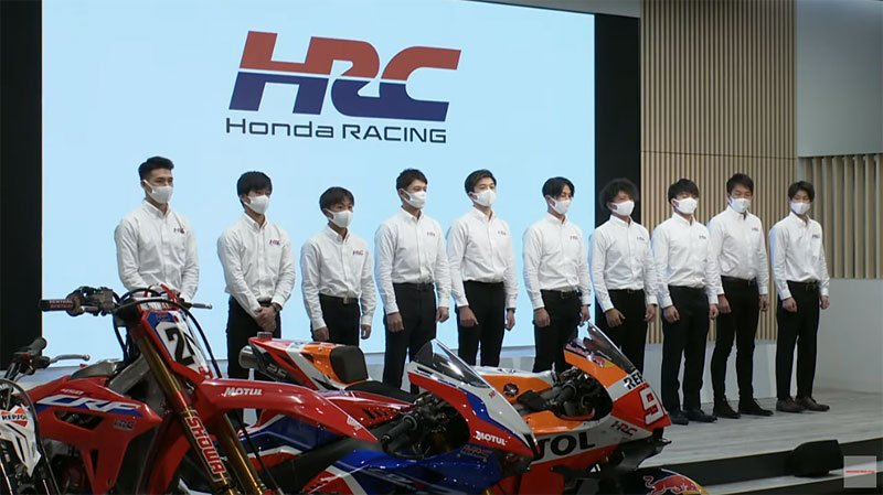 La conférence a débuté avec Toshihiro Mibe, le nouveau président du géant japonais depuis avril 2021, qui a insisté sur l’orientation écologique de la compétition (électrique + ecofuel) et a annoncé une restructuration de la HRC (Honda Racing Corporation) symbolisée par un nouveau logo, avec les lettres dorénavant inclinées. Voitures et motos seront dorénavant réunies sous ce logo, avec des liaisons renforcées entre ces deux mondes.