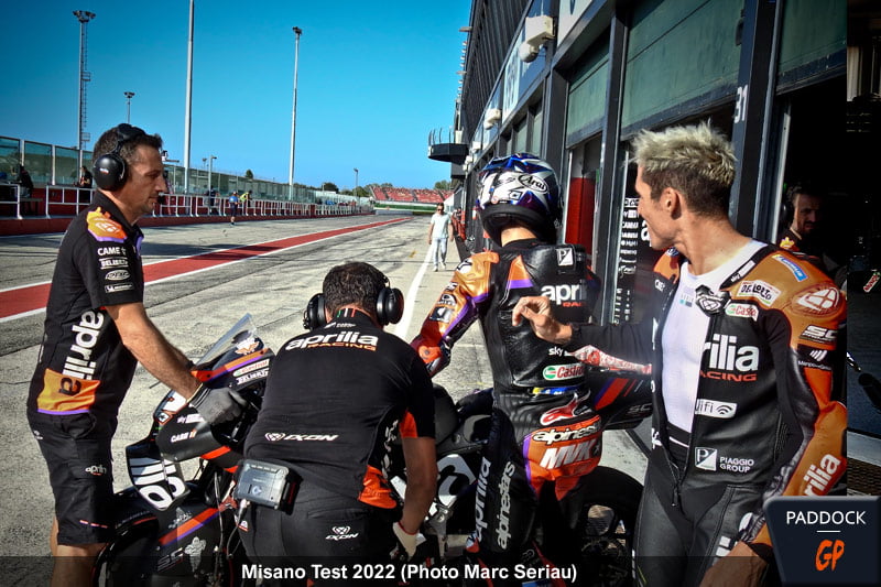Entre 2021 et 2022, l’Aprilia RS-GP est la moto qui a subi l’évolution la plus accélérée. Ceci grâce au travail effectué par Massimo Rivola et Romano Albesiano dans les stands, et à certaines dynamiques déclenchées par le passage d’une équipe indépendante à une équipe officielle, avec le soutien du groupe Piaggio. Une métamorphose qui « a donné à tous les membres de l’équipe un nouveau sentiment et un nouvel élan. Nous avons réalisé que nous avions le potentiel pour être meilleurs » explique le team manager Paolo Bonora à MotoGP.com. A tel point qu’ils perdront leurs Concessions lors du prochain championnat et devront se battre à armes égales contre les autres grands noms. Les premiers signes d’une percée sont apparus il y a deux ans déjà, « nous avons considérablement amélioré la maniabilité et l’accélération de la moto. Tous nos pilotes ont pu ressentir ces améliorations immédiatement. »