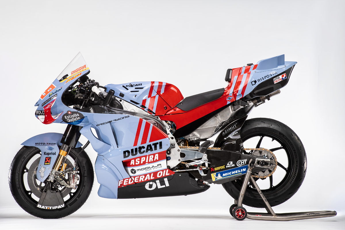 Après une présentation spectaculaire de son équipe MotoGP remaniée depuis sa base de Faenza, le team Gresini Racing maintenant dirigé par Nadia Padovani a fourni à la presse les photos officielles des Ducati GP22 de Álex Márquez et Fabio Di Giannantonio pour la saison MotoGP à venir.