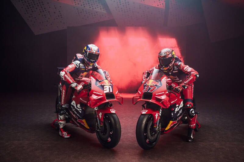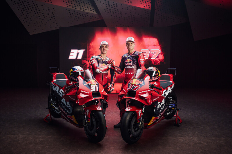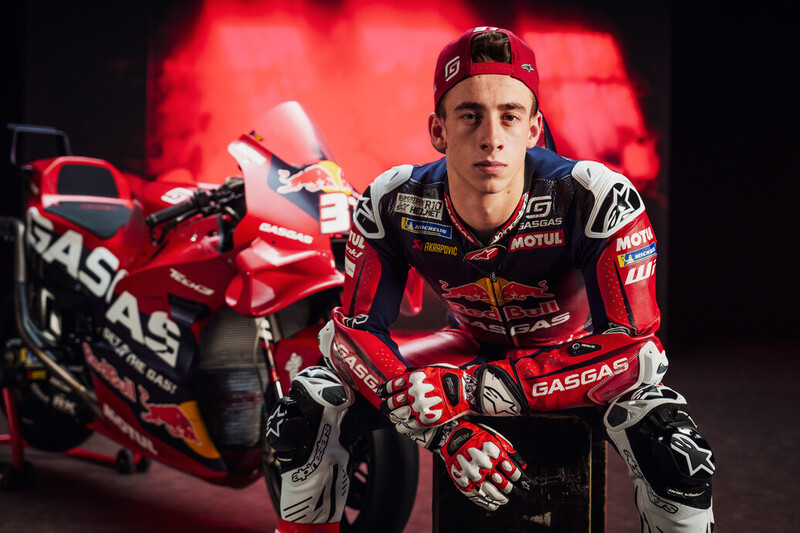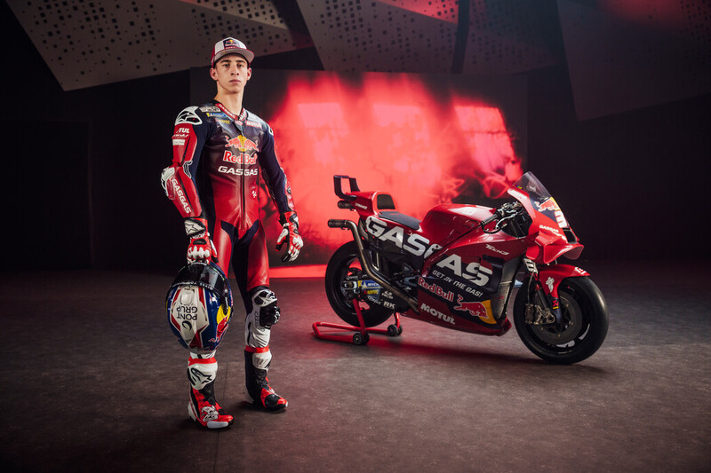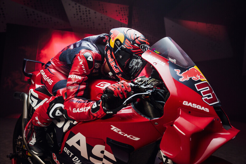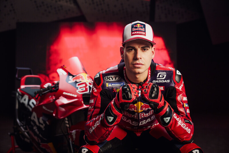 Après la présentation de l’équipe d’Hervé Poncharal, dorénavant intitulée Red Bull GASGAS Tech3, et avant que Augusto Fernandez et Pedro Acosta ne répondent aux questions des journalistes en vidéo-conférence, les photos officielles des deux pilotes espagnols sont venues compléter celles de leurs KTM RC16 avec lesquelles ils participeront au championnat du Monde MotoGP.